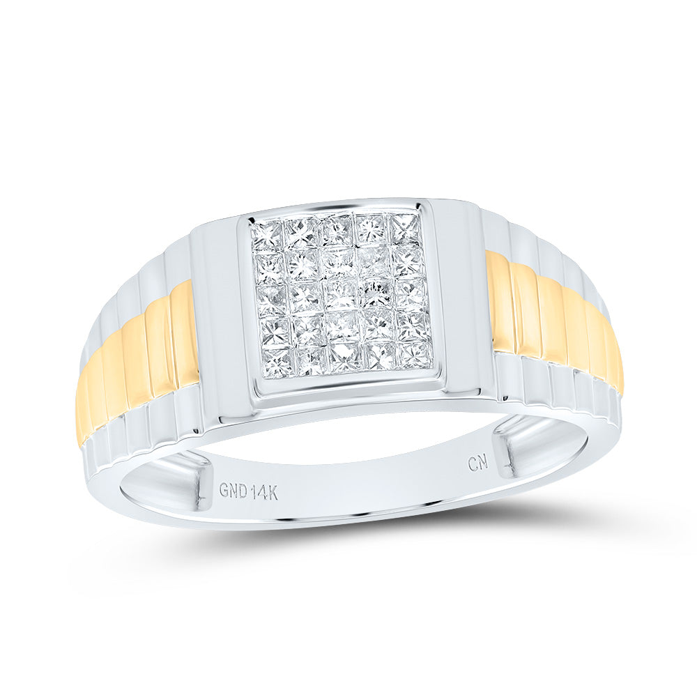 14kt Yellow Gold Mens Round Channel-set Diamond Square Stripe Cluster Ring 1-1/2 Cttw