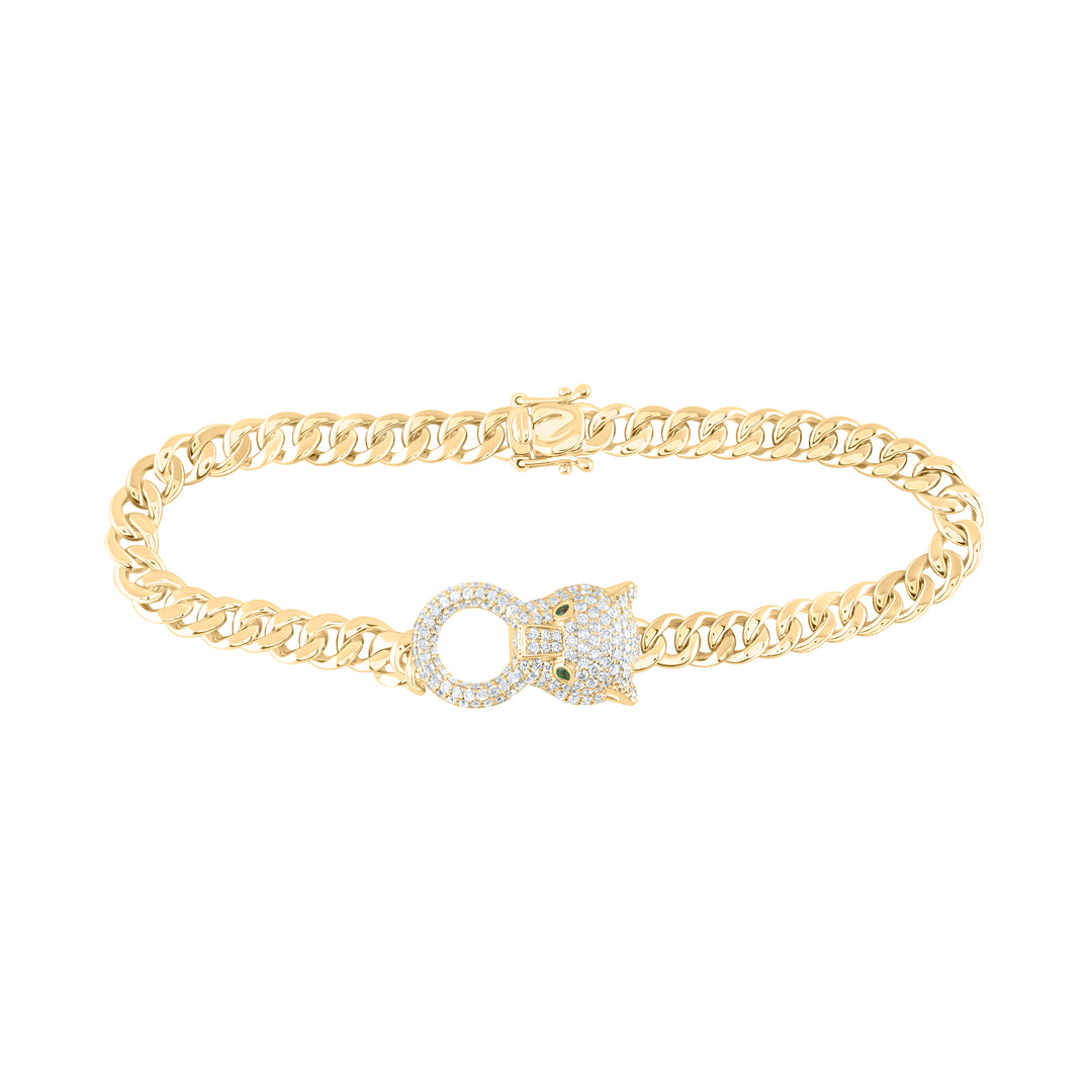 1 1/3CTW-DIA CN 0.03CTW-RD-EM NAT GEM LADIES LEOPARD CURB CHAIN BRACELET (7 INCH)
