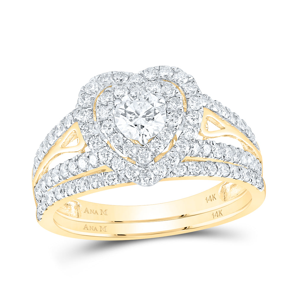 14kt Yellow Gold Womens Round Diamond Bridal Wedding Engagement Ring Band Set 1-1/5 Cttw