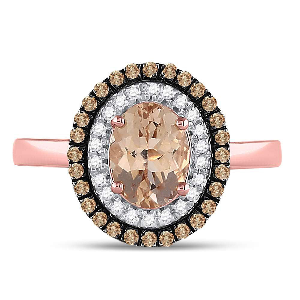 10kt Rose Gold Womens Oval Morganite Solitaire Diamond Fashion Ring 1-1/2 Cttw