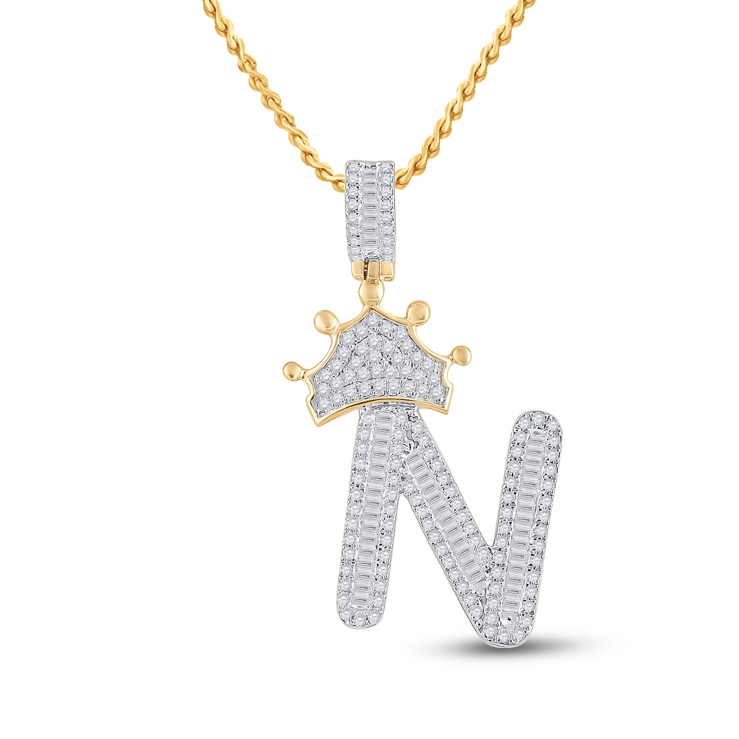 3/4CT-DIA P1P2 CROWN INITIAL "N" MENS PENDANT