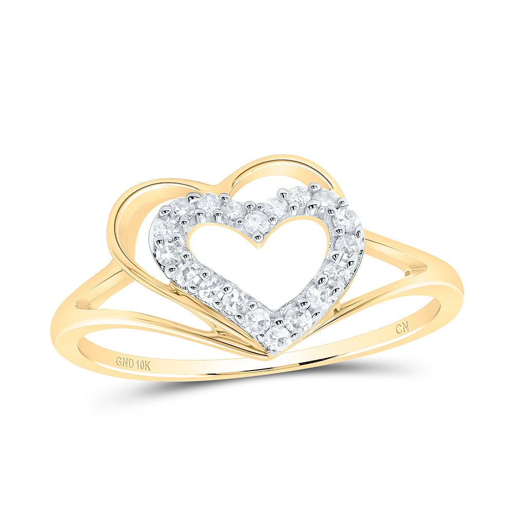 10k Yellow Gold Round Diamond Womens Heart Promise Bridal Engagement Ring 1/10 Cttw