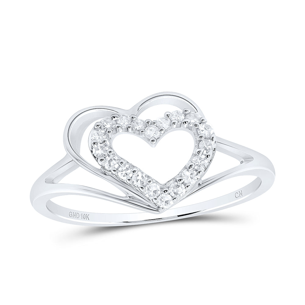 10kt White Gold Womens Round Diamond Double Nested Heart Ring 1/8 Cttw