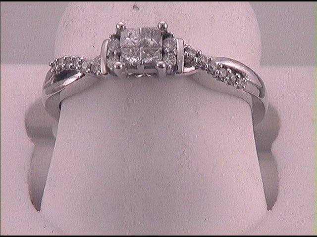 10kt White Gold Womens Princess Diamond Bridal Wedding Engagement Ring Band Set 3/8 Cttw