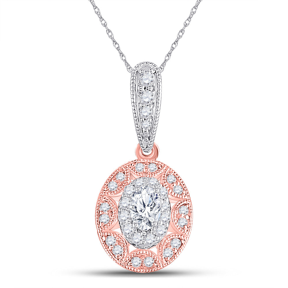 14kt Two-tone Gold Womens Oval Diamond Vintage Inspired Halo Pendant 3/8 Cttw