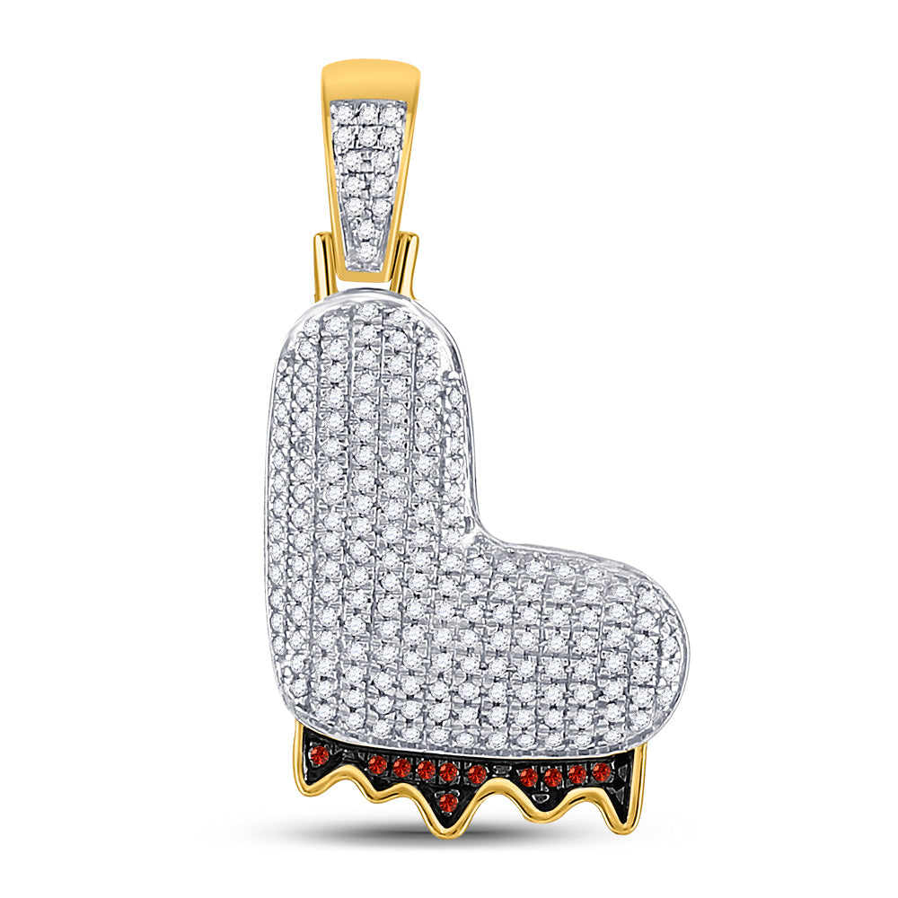 10kt Yellow Gold Mens Round Red Color Enhanced Diamond ""I"" Letter Charm Pendant 3/4 Cttw