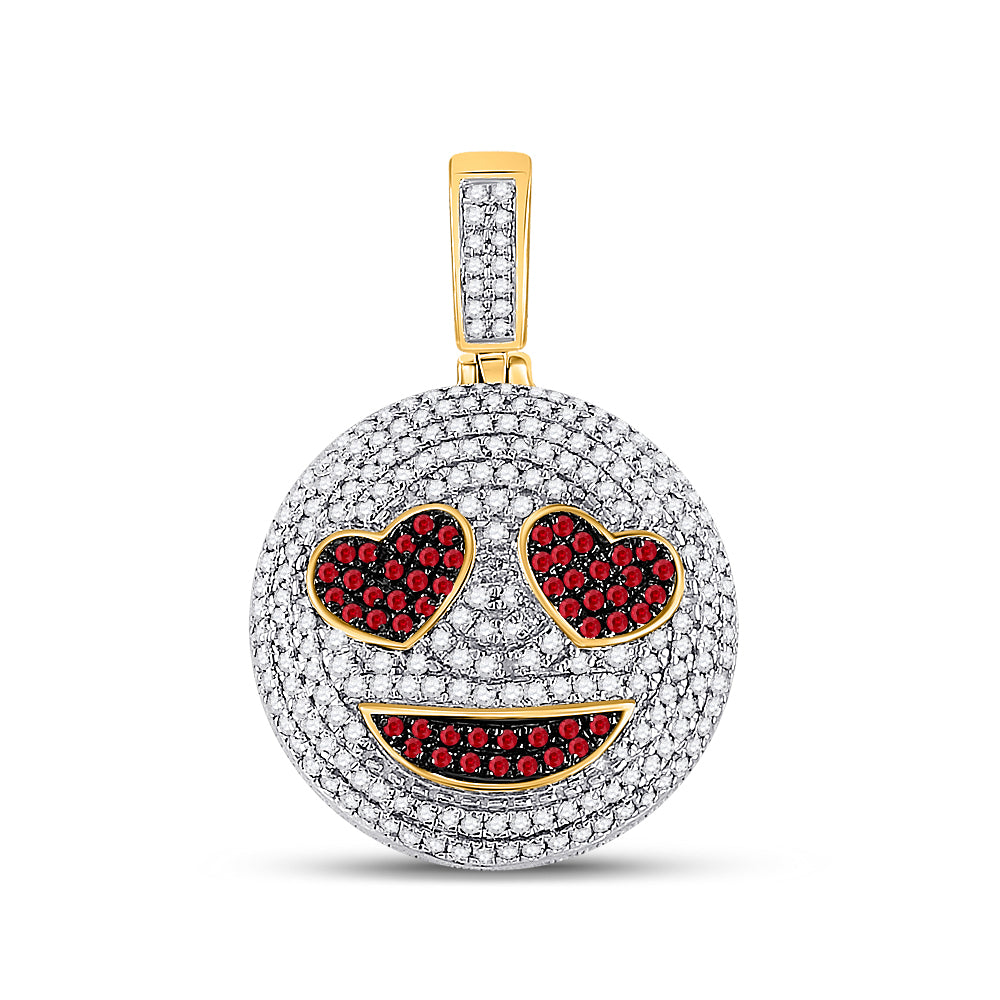 10kt Yellow Gold Mens Round Ruby Emoji Smiley Heart Charm Pendant 1-1/3 Cttw