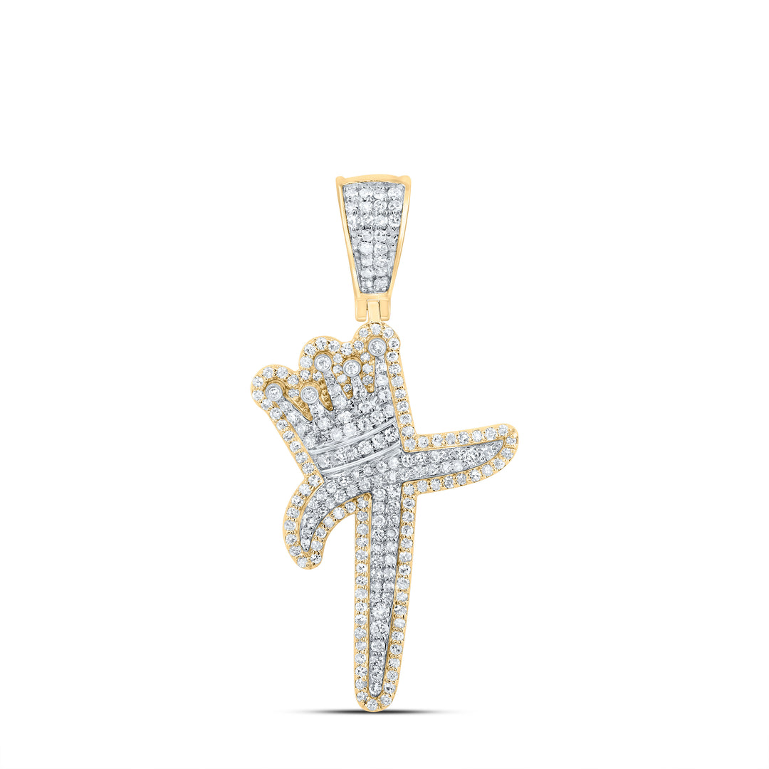 1CTW-DIA NK INITIAL "T" CROWN MENS PENDANT