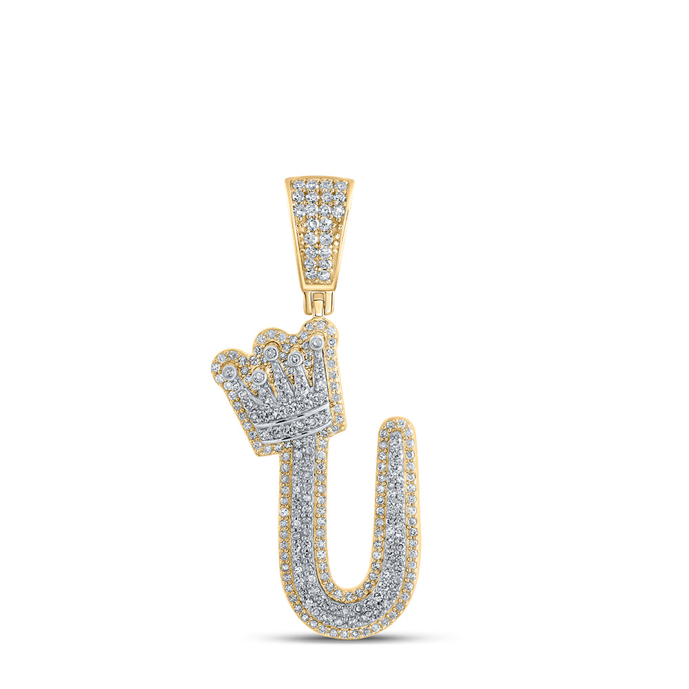 1CTW-DIA NK INITIAL "U" CROWN MENS PENDANT