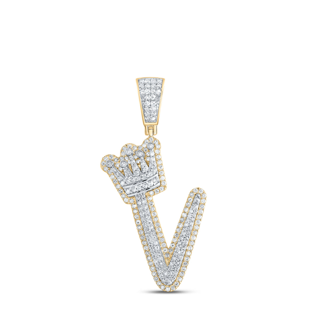 1CTW-DIA NK INITIAL "V" CROWN MENS PENDANT