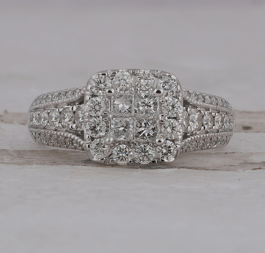 14kt White Gold Womens Princess Diamond Halo Bridal Wedding Engagement Ring 1-1/3 Cttw (Certified)