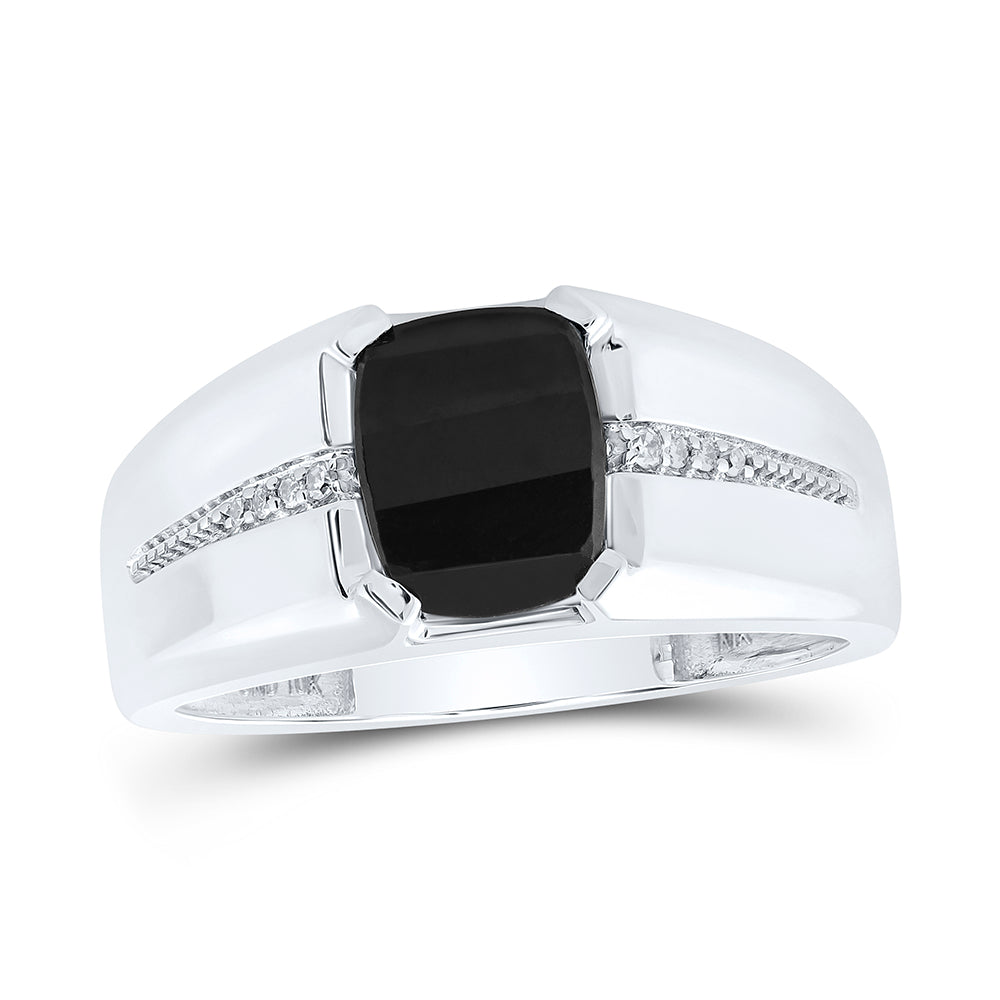1/20 CTW-DIA NK 9X7MM ONYX BLACK MENS RING