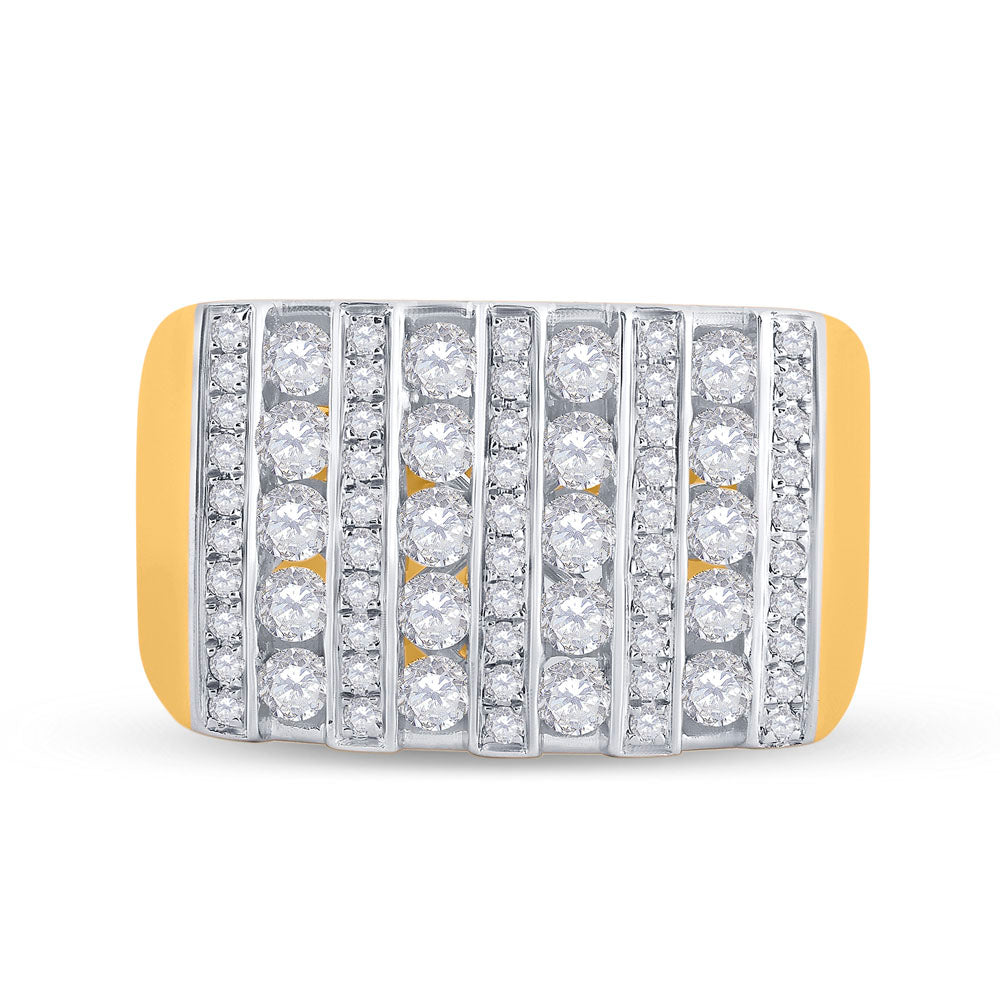 14kt Yellow Gold Mens Round Channel-set Diamond Square Stripe Cluster Ring 1-1/2 Cttw