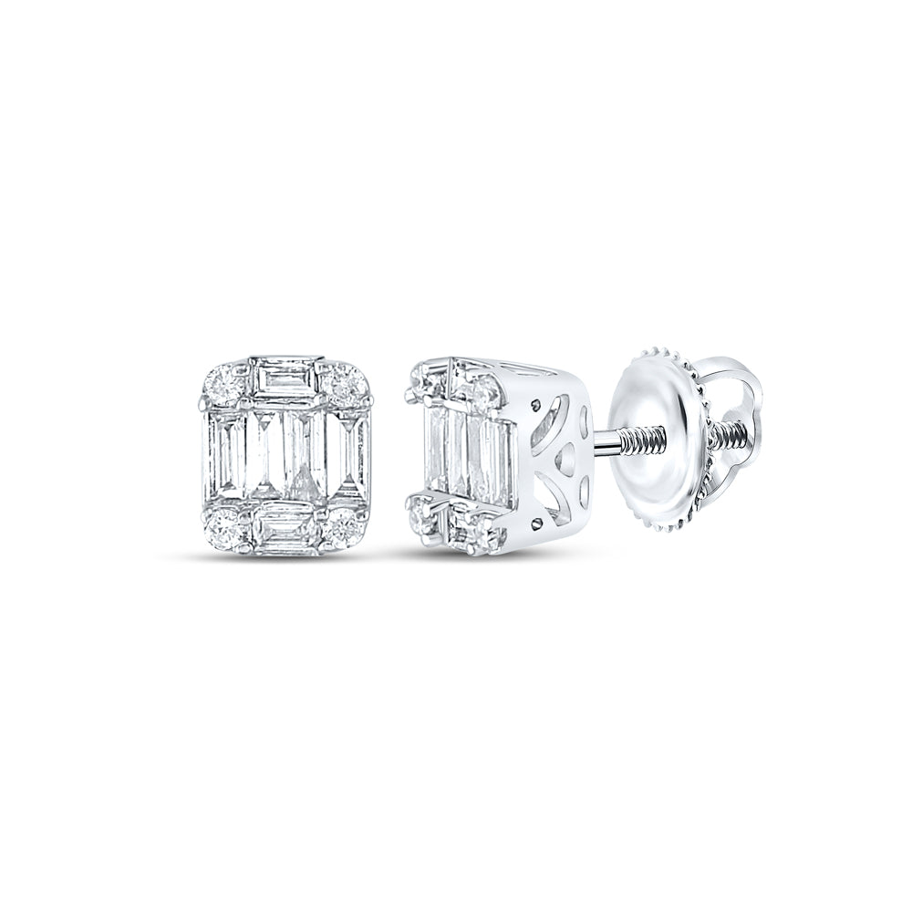 14kt White Gold Womens Baguette Diamond Fashion Cluster Earrings 1/4 Cttw