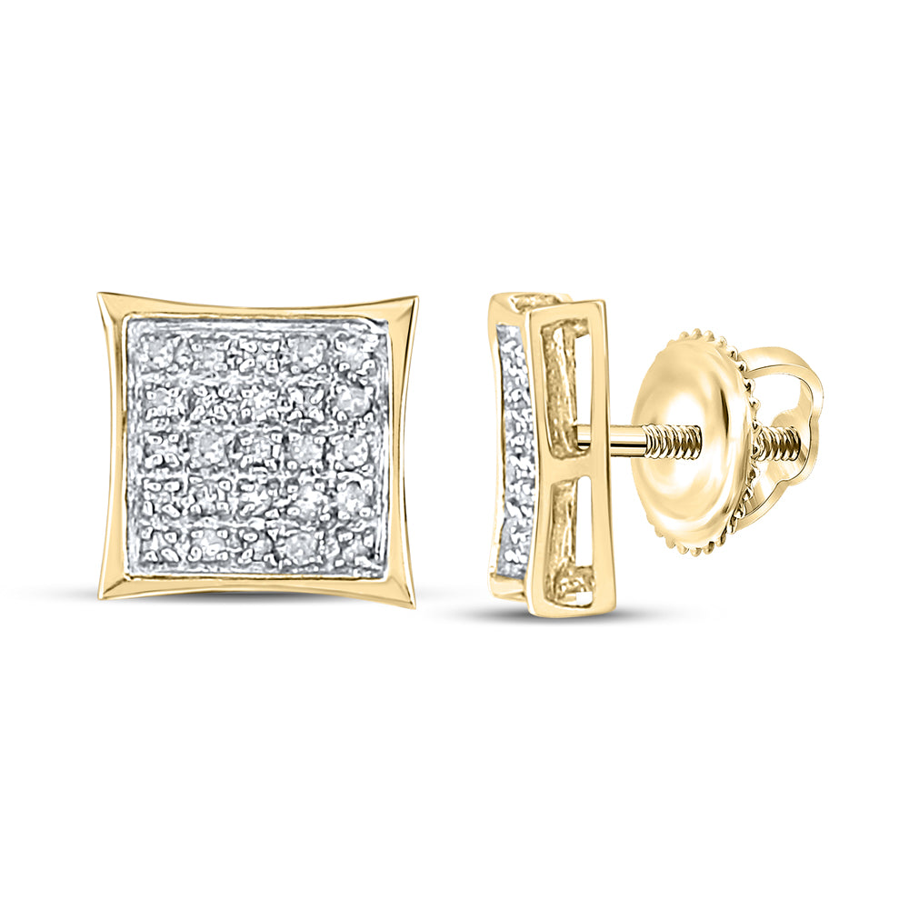 10kt Yellow Gold Unisex Round Diamond Square Cluster Stud Earrings 1/6 Cttw