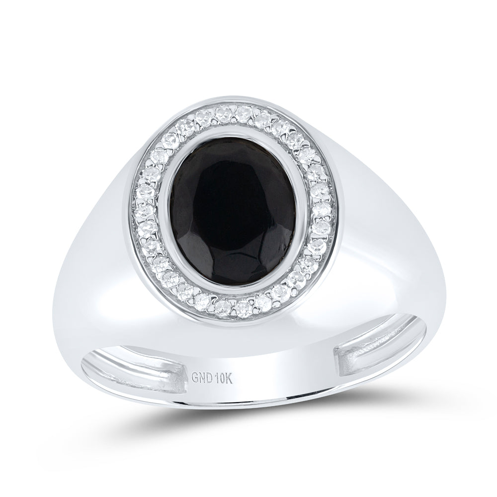 1/6CTW-DIA P1-10X8 MM-OVAL ONYX BLACK MENS RING