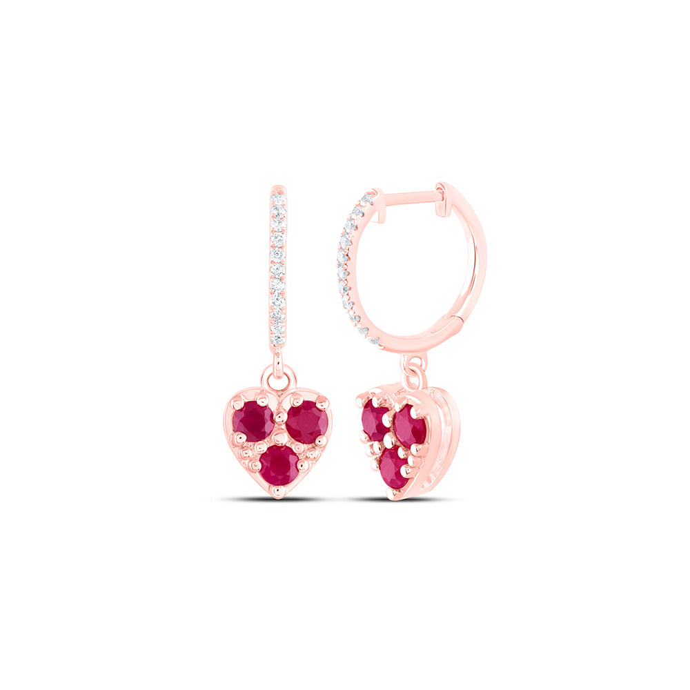 1/10CTW-DIA ANA M 7/8CTW RD-RU NAT GEM HEART DANGLING EARRING