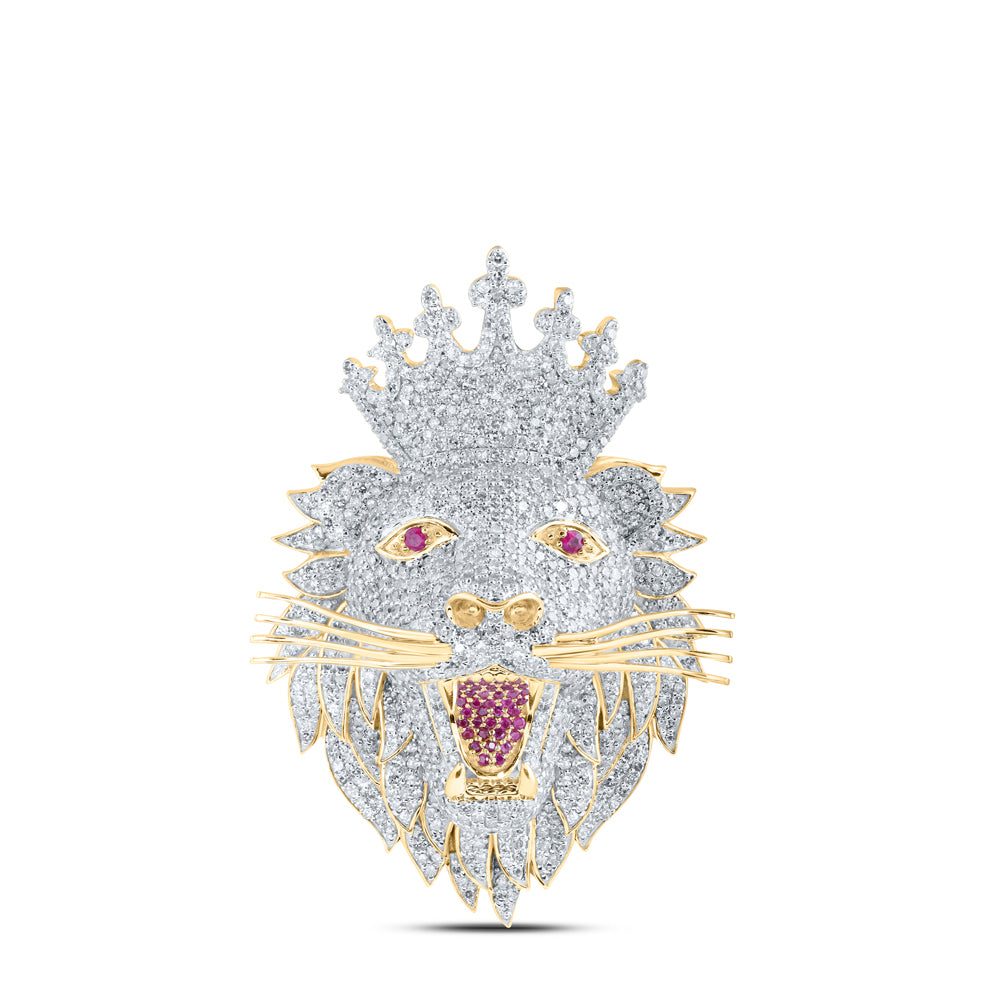 5 3/4 CTW-DIA NK 1/12 CT-RUBY LION FACE MENS CHARM
