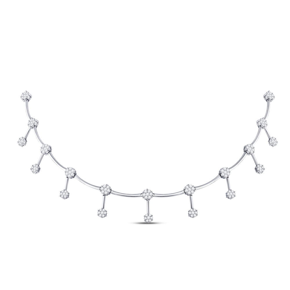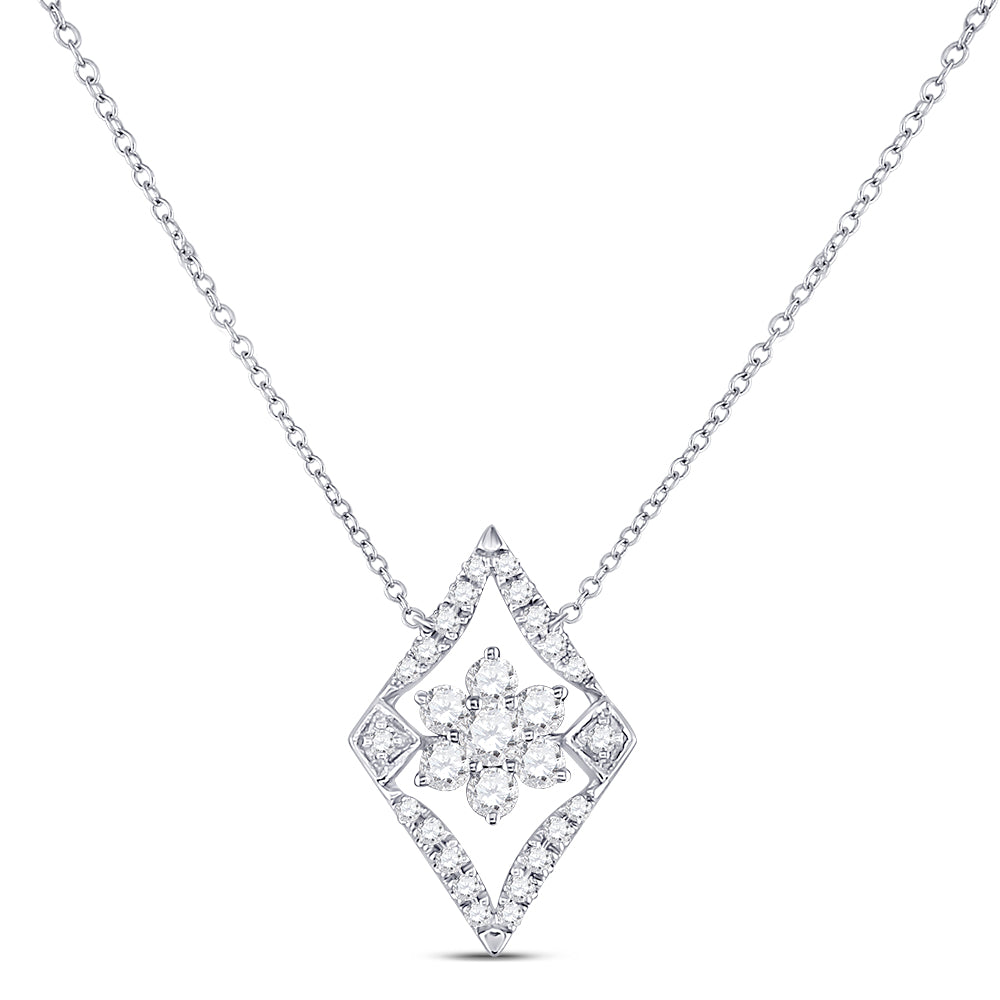 14kt White Gold Womens Round Diamond Geometric Cluster Necklace 1/3 Cttw