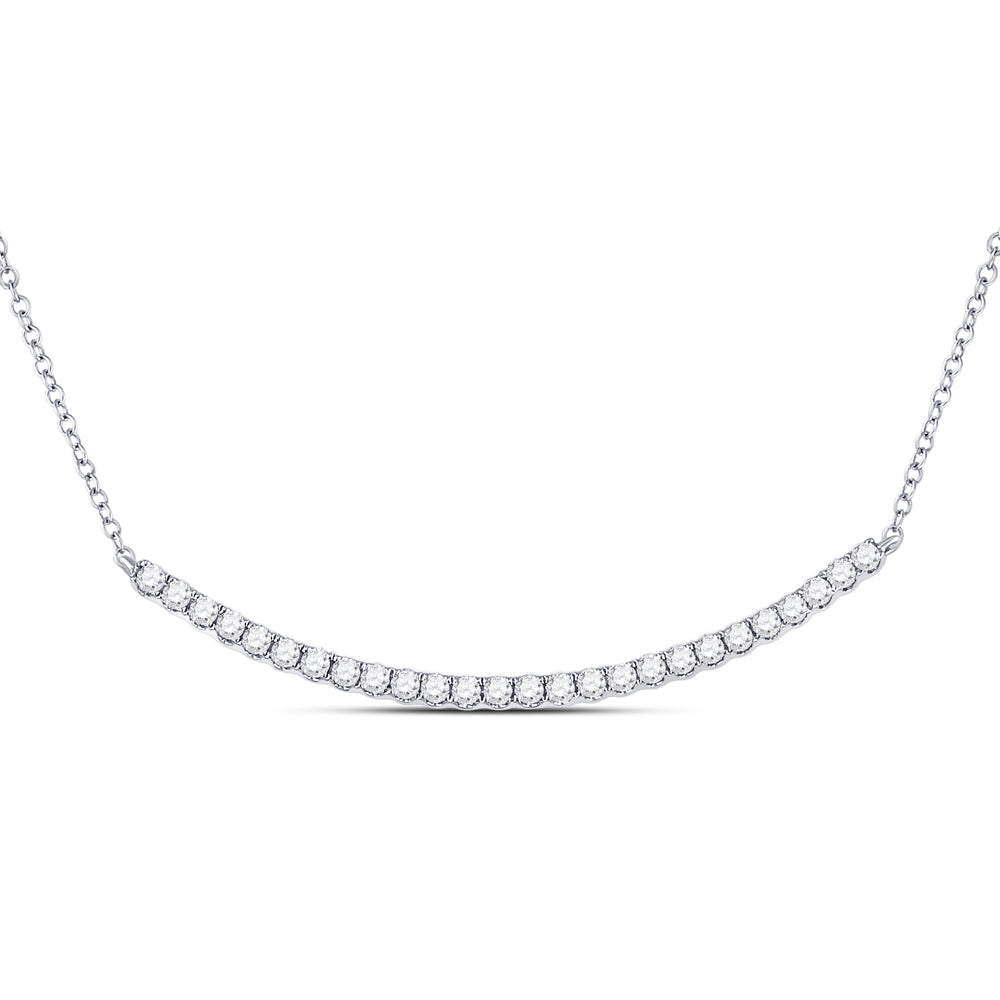 14kt White Gold Womens Round Diamond Curved Bar Necklace 3/4 Cttw