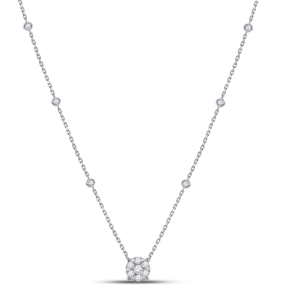 14kt White Gold Womens Round Diamond Fashion Cluster Necklace 5/8 Cttw