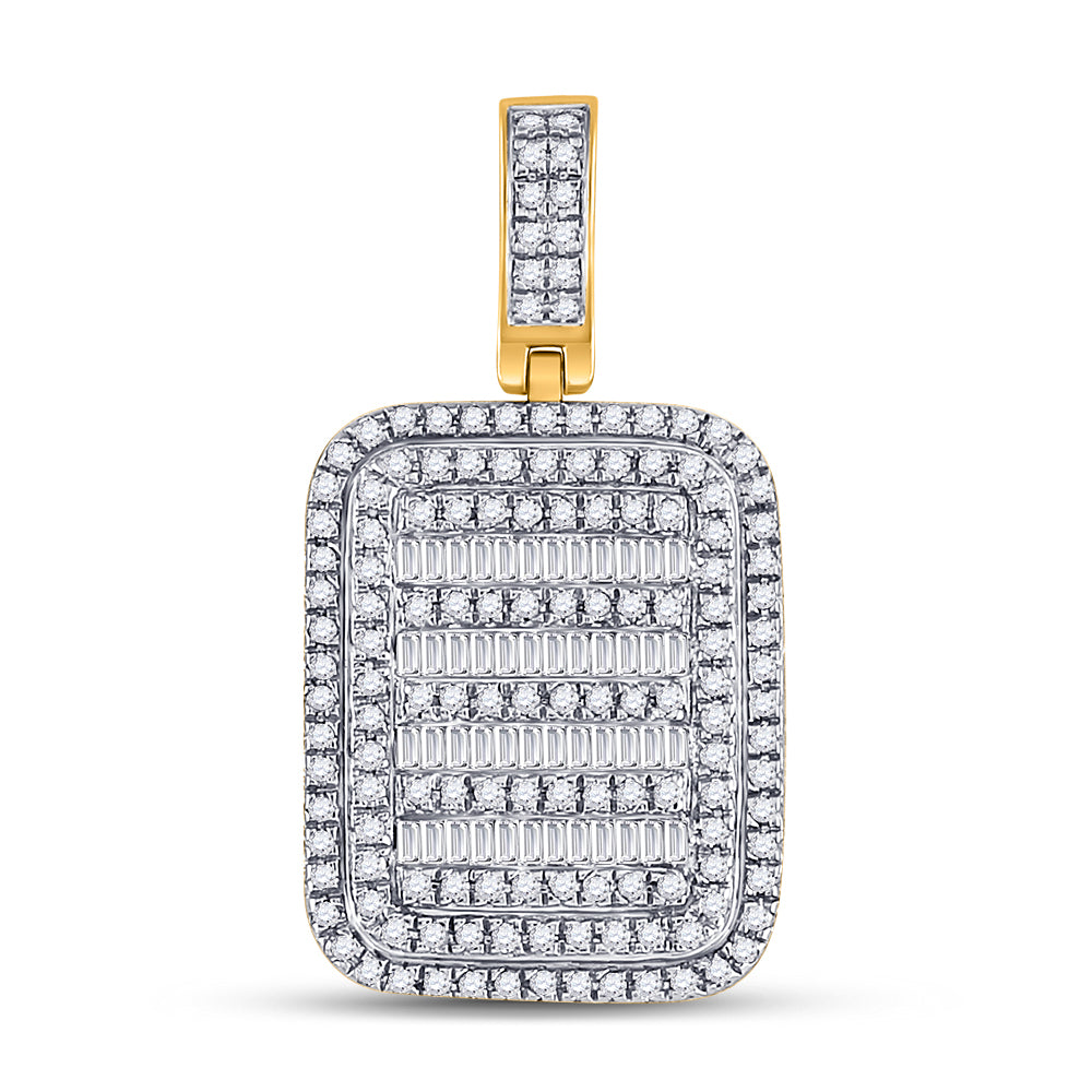 10kt Yellow Gold Mens Baguette Diamond Dog Tag Picture Memory Pendant 2.00 Cttw