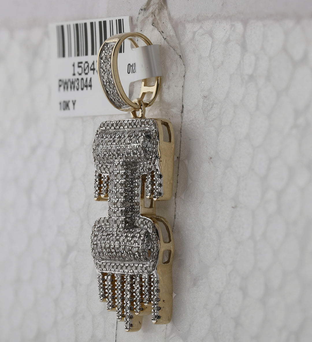 10kt Yellow Gold Mens Round Diamond ""H"" Letter Charm Pendant 7/8 Cttw