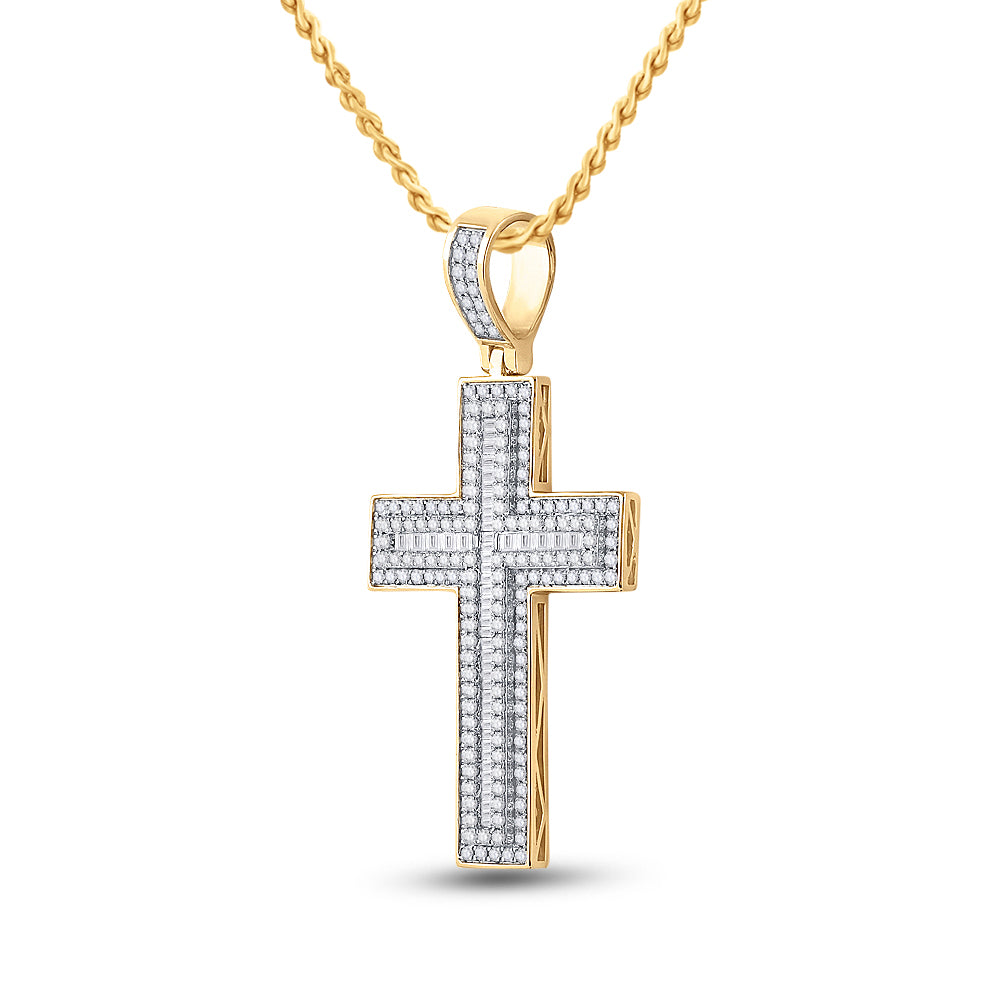 10kt Yellow Gold Mens Baguette Diamond Cross Charm Pendant 2-3/4 Cttw