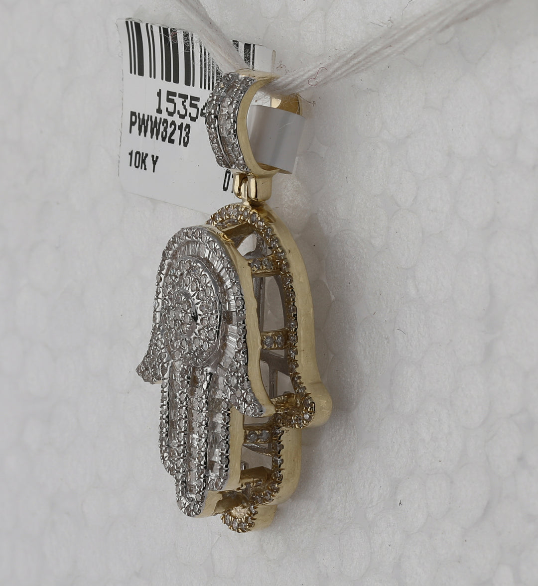 10kt Yellow Gold Mens Baguette Diamond Hamsa Charm Pendant 1.00 Cttw
