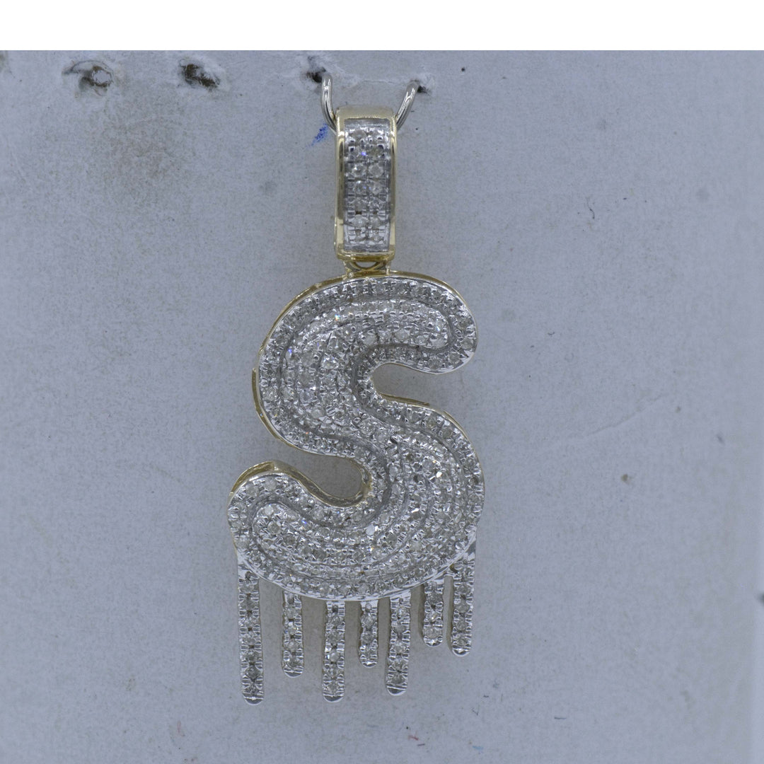 10kt Yellow Gold Mens Round Diamond ""S"" Letter Charm Pendant 5/8 Cttw