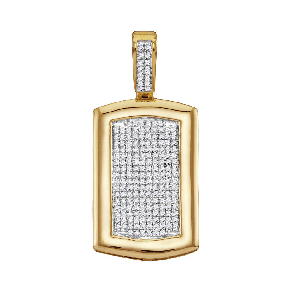 10kt Yellow Gold Mens Round Diamond Dog Tag Cluster Charm Pendant 1/2 Cttw