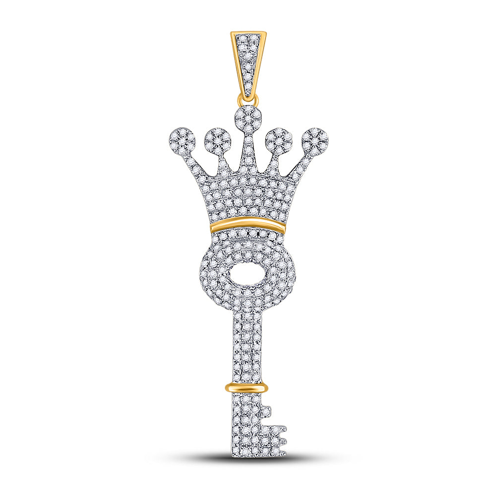 10kt Yellow Gold Mens Round Diamond Crown King Key Charm Pendant 3/4 Cttw