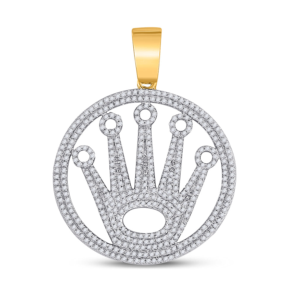 10kt Yellow Gold Mens Round Diamond Crown Charm Pendant 1-1/5 Cttw