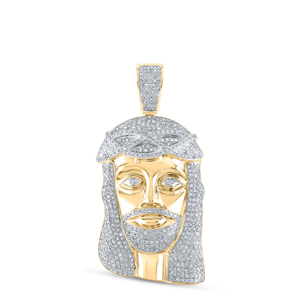 10kt Yellow Gold Mens Round Diamond Jesus Face Charm Pendant 1.00 Cttw