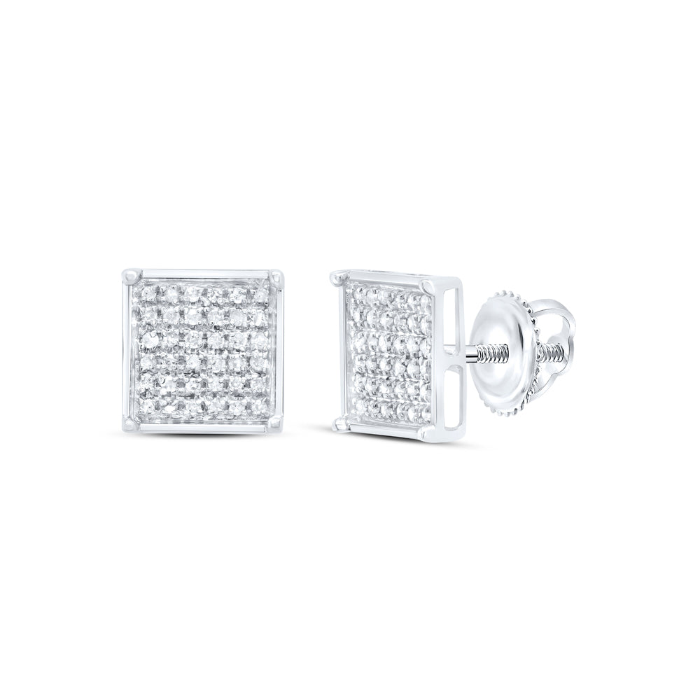 Sterling Silver Womens Round Diamond Square Cluster Earrings 1/20 Cttw