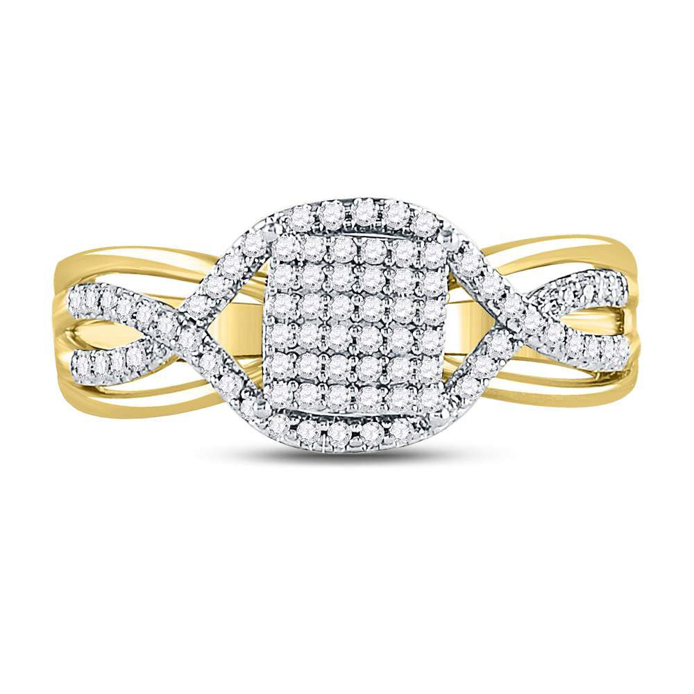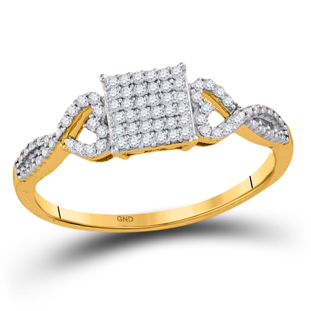 10kt Yellow Gold Womens Round Diamond Milgrain Cable Cluster Ring 1/8 Cttw