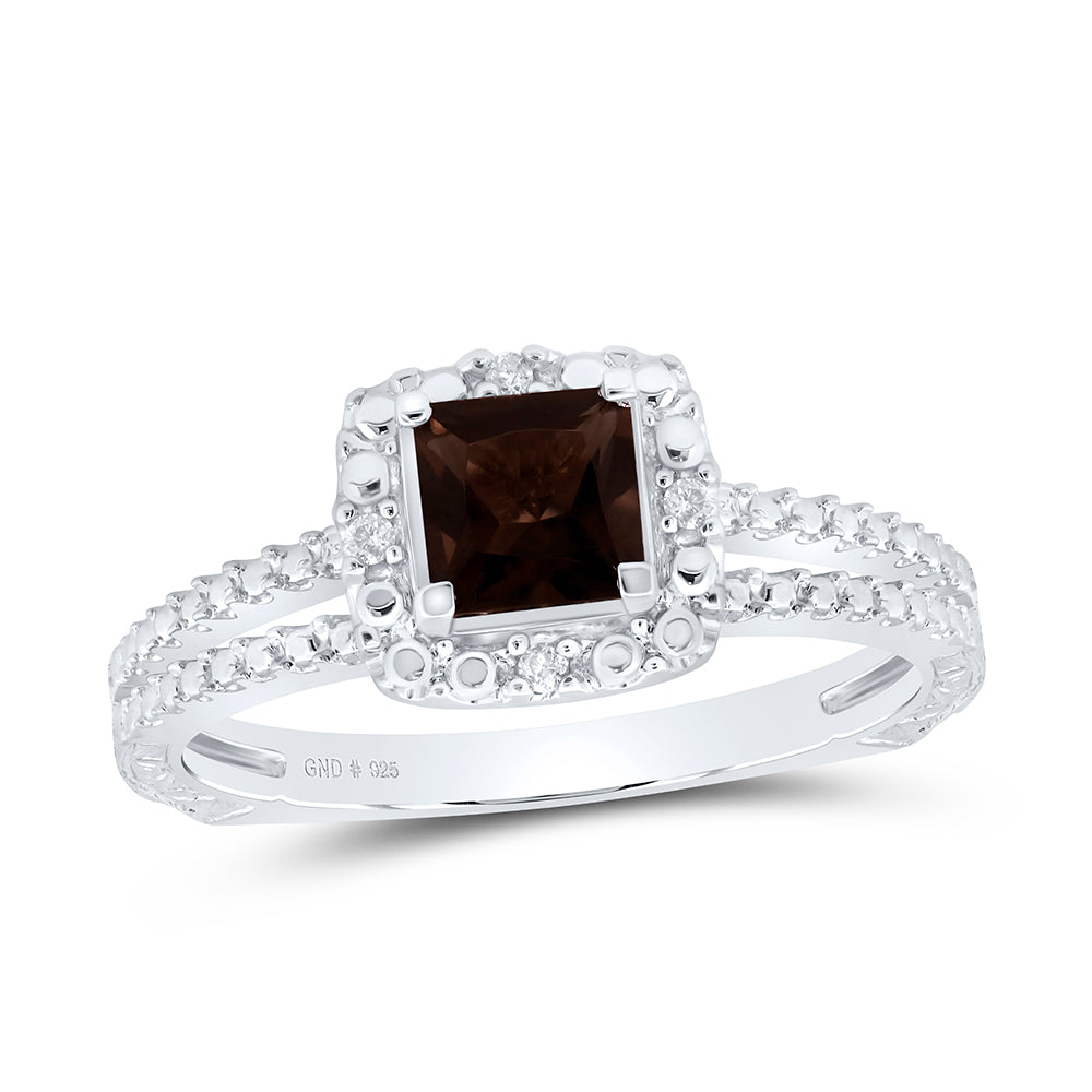 Sterling Silver Womens Princess Lab-Created Smoky Quartz Solitaire Ring 3/4 Cttw