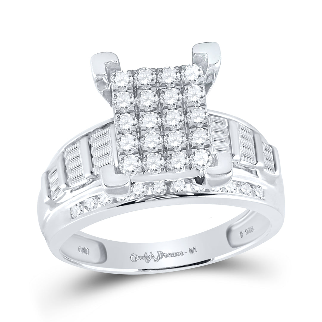 Sterling Silver Womens Round Diamond Cluster Bridal Wedding Engagement Ring 5/8 Cttw