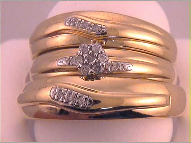 10k Yellow Gold Diamond His & Hers Matching Trio Wedding Engagement Bridal Ring Set 1/5 Cttw