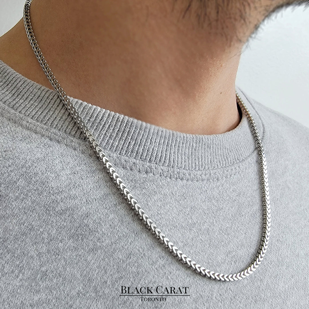 Our Figaro chains are made from 925 sterling silver. What this means is that 92.5% of the chain is made from pure silver and the rest is made from another metal like copper. The reason why it must be mixed is because the silver has to be hardened to make it durable. When it comes to silver this purity is the A grade. Our chains are also all handmade in Italy by talented professionals who have years of experience in crafting this chain. When you buy a Black Carat Figaro Chain you are buying an item that is quality, durable and made by craftsmen that are passionate about their work.