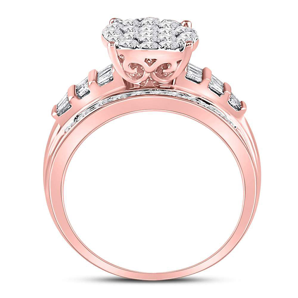 10kt Rose Gold Womens Round Diamond Cluster Bridal Wedding Engagement Ring 1.00 Cttw