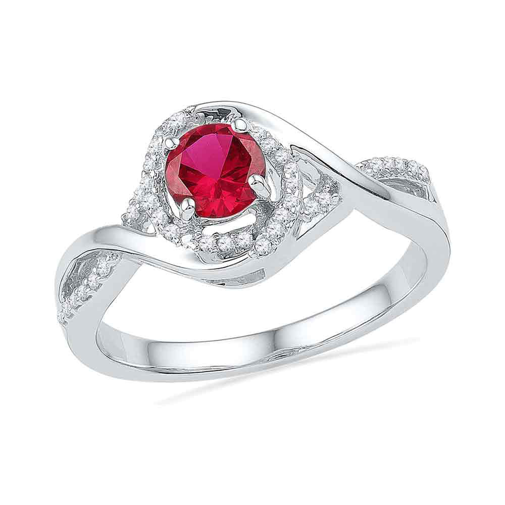 10kt White Gold Womens Round Lab-Created Ruby Solitaire Diamond Twist Ring 3/4 Cttw