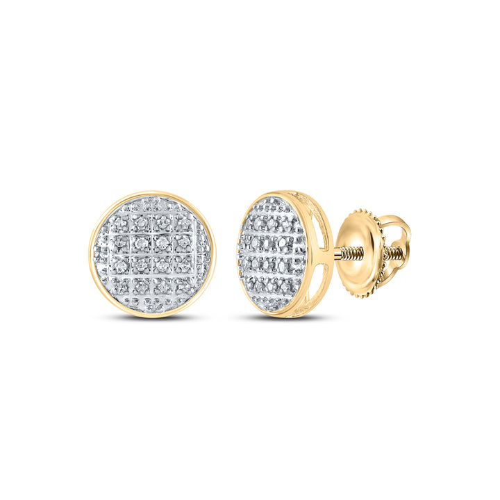 10kt Yellow Gold Mens Round Diamond Circle Cluster Stud Earrings 1/12 Cttw