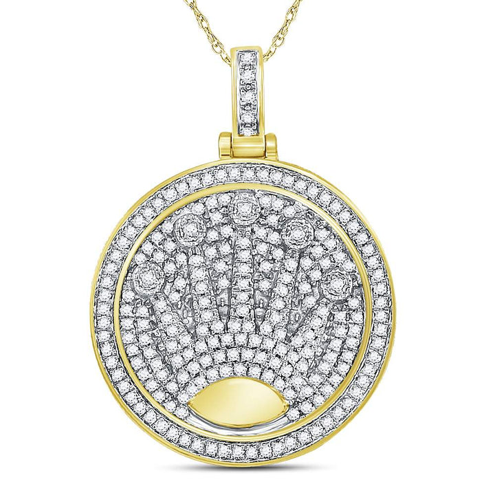 10kt Yellow Gold Mens Round Diamond King Crown Charm Pendant 7/8 Cttw
