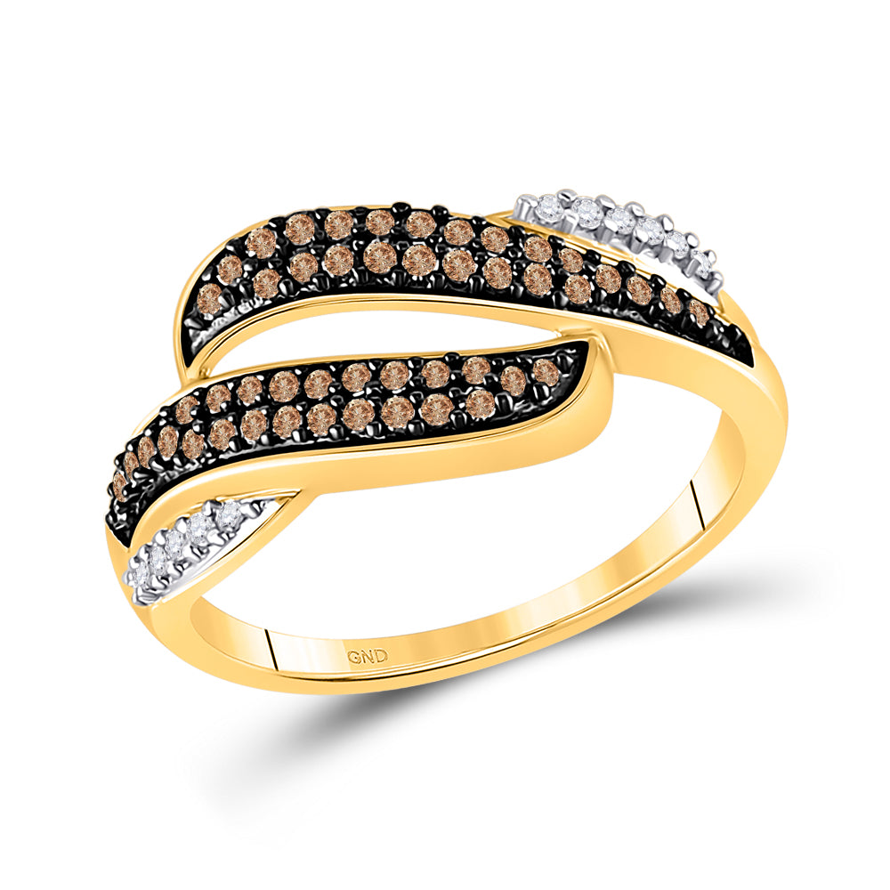 10kt Yellow Gold Womens Round Brown Diamond Band Ring 1/3 Cttw