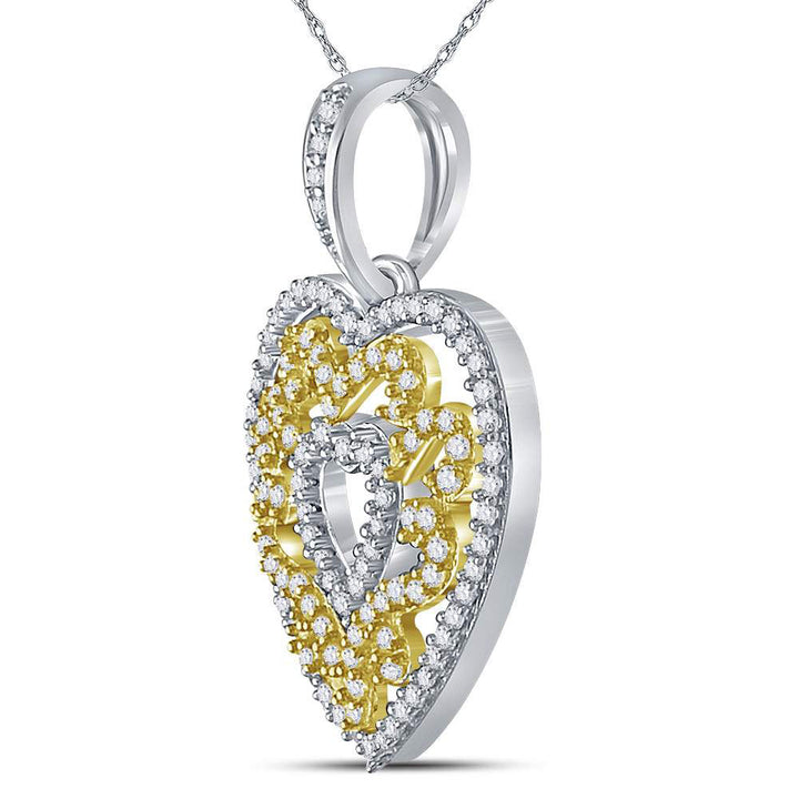 10kt Yellow Gold Womens Round Diamond Nested Curl Heart Pendant 1/2 Cttw