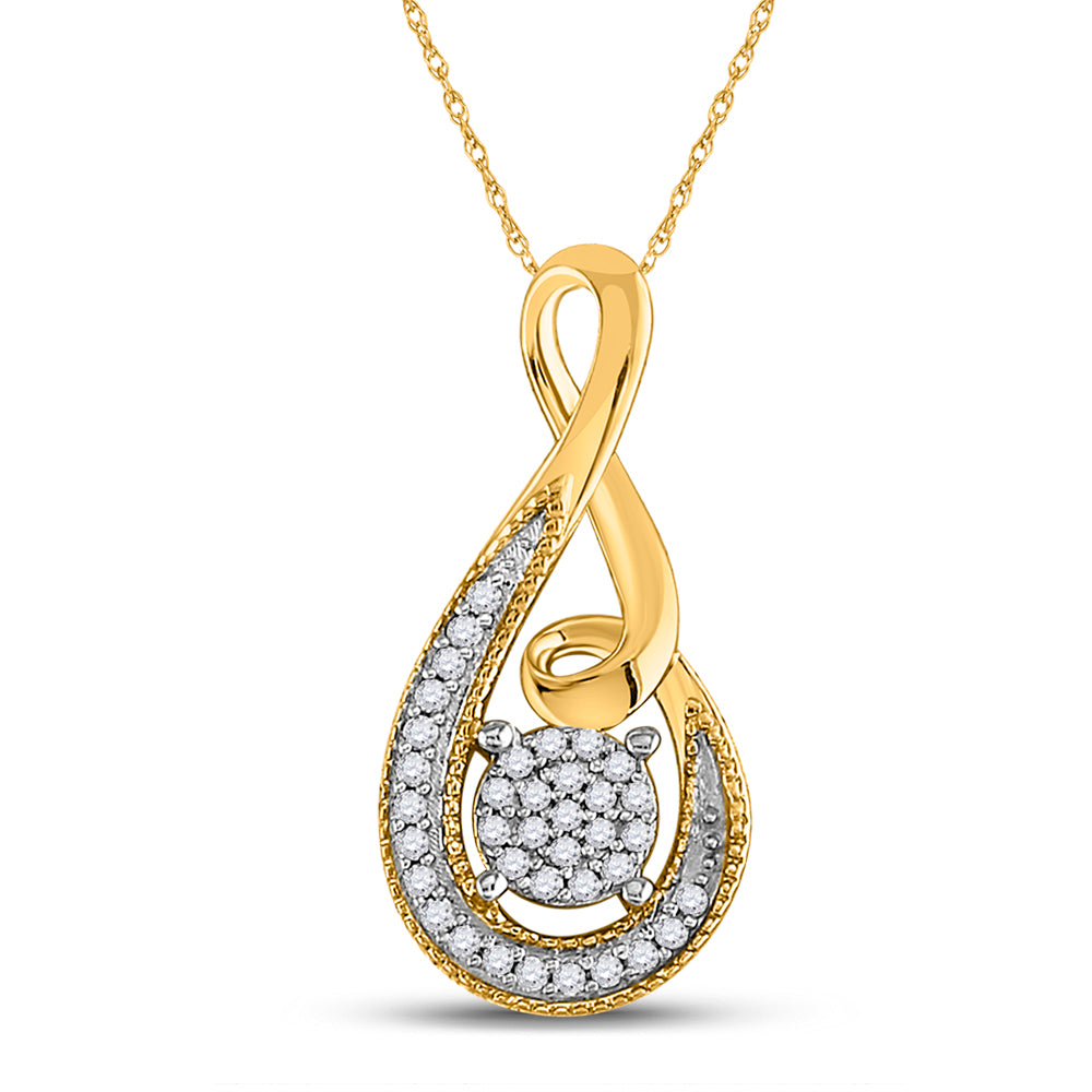 10kt Yellow Gold Womens Round Diamond Teardrop Cluster Pendant 1/10 Cttw