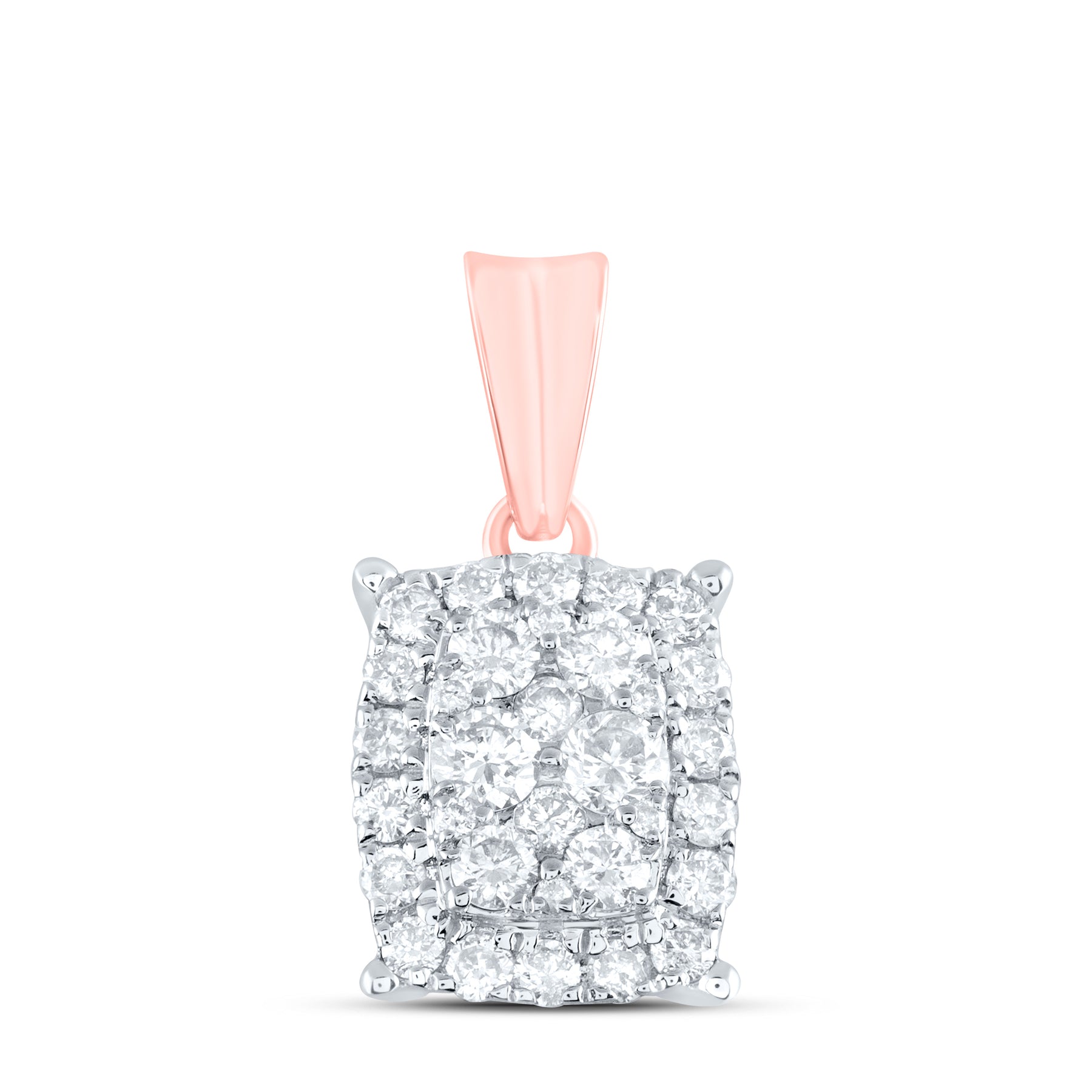 14kt Rose Gold Womens Round Diamond Rectangular Cluster Pendant 1/2 Cttw