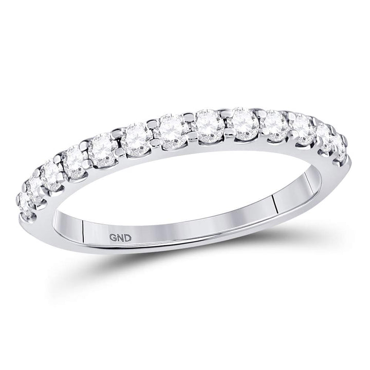 14kt White Gold Womens Round Diamond Single Row Machine-set Wedding Band 1/2 Cttw