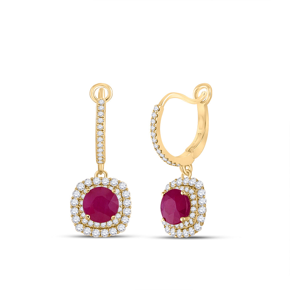 14kt Yellow Gold Womens Round Ruby Fashion Dangle Earrings 2-3/4 Cttw